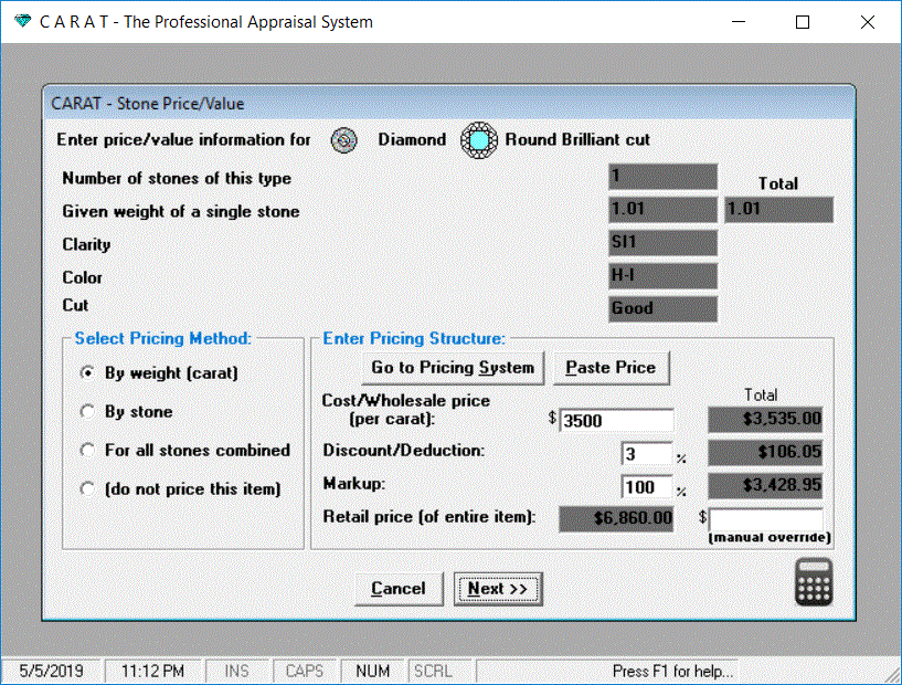 by an individual item or for the entire bunch. CARAT will even allow for not pricing each