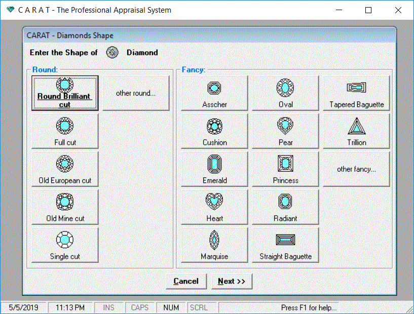 of the diamond(s) being appraised based on its measurements, enabling estimation without unnecessarily unmounting a stone.
